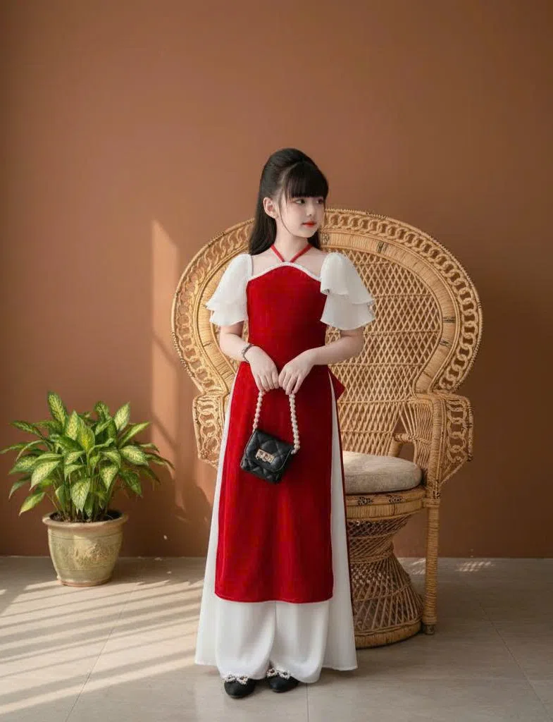 ÁO DÀI TAY BÈO 2 LỚP - ĐỎ